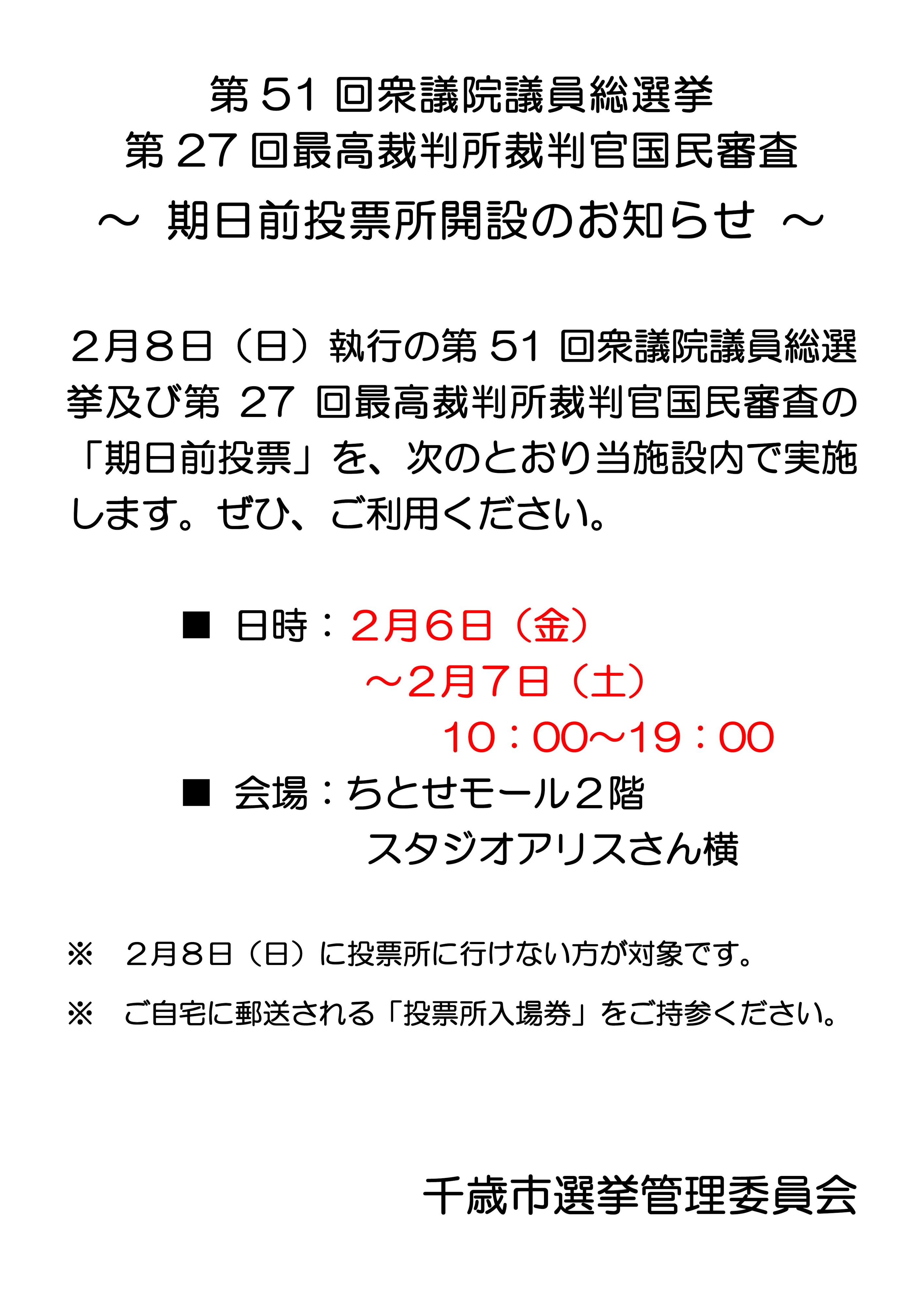 - 【CHECK!】ちとせモール「2月のお買い物情報カレンダー」