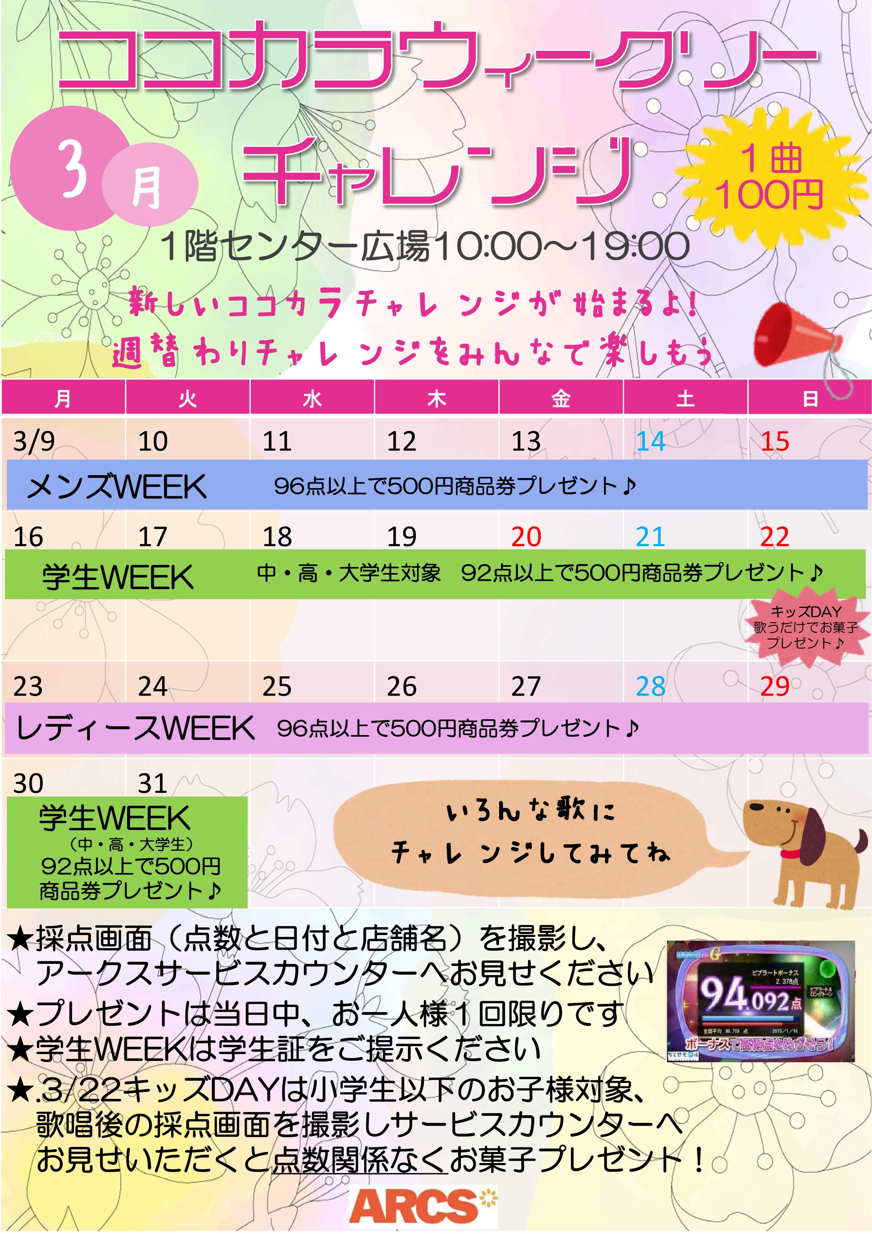 - 第1・2・3週目の日曜日、月3回実施