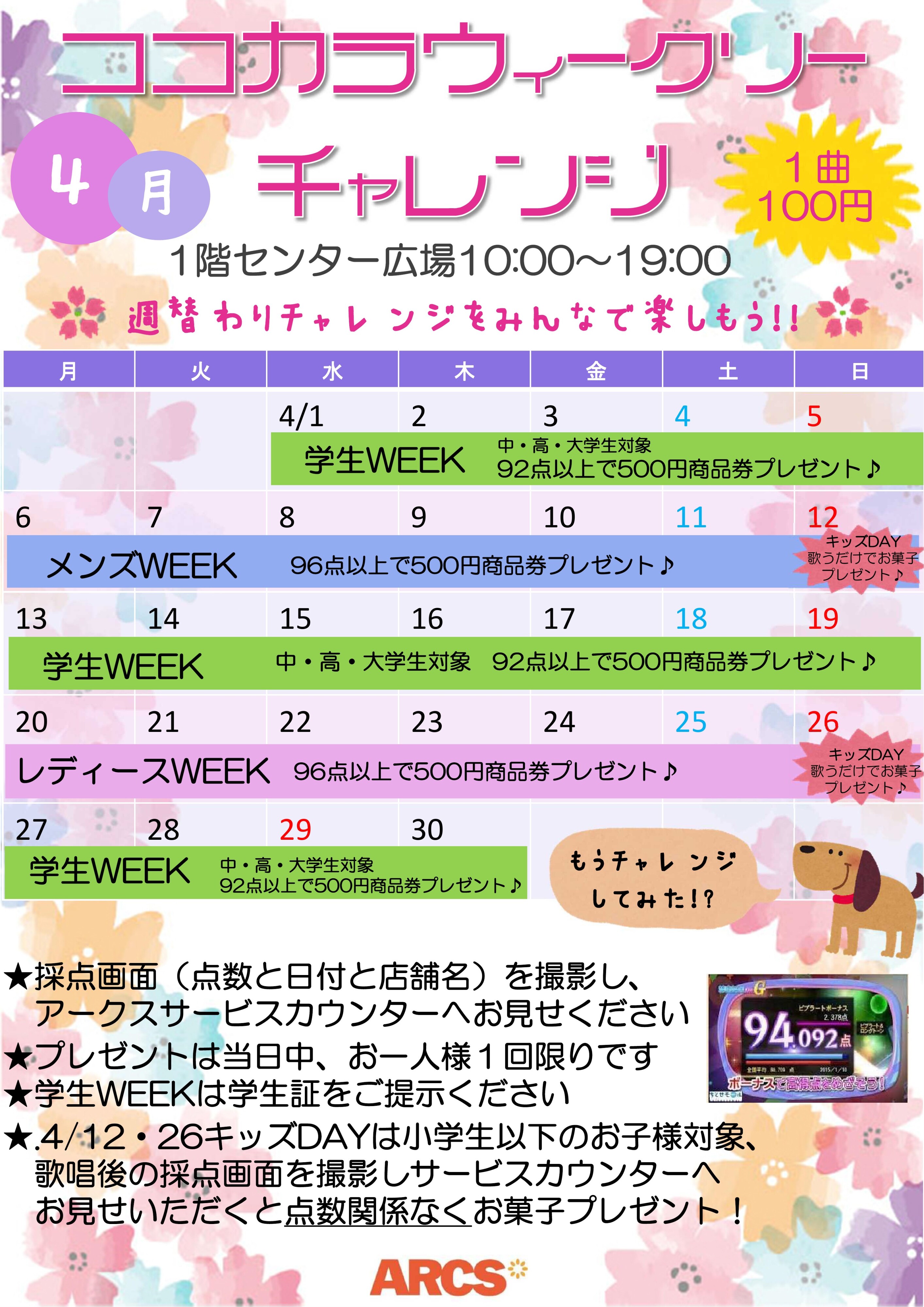 - 【CHECK!】ちとせモール「4月のお買い物情報カレンダー」