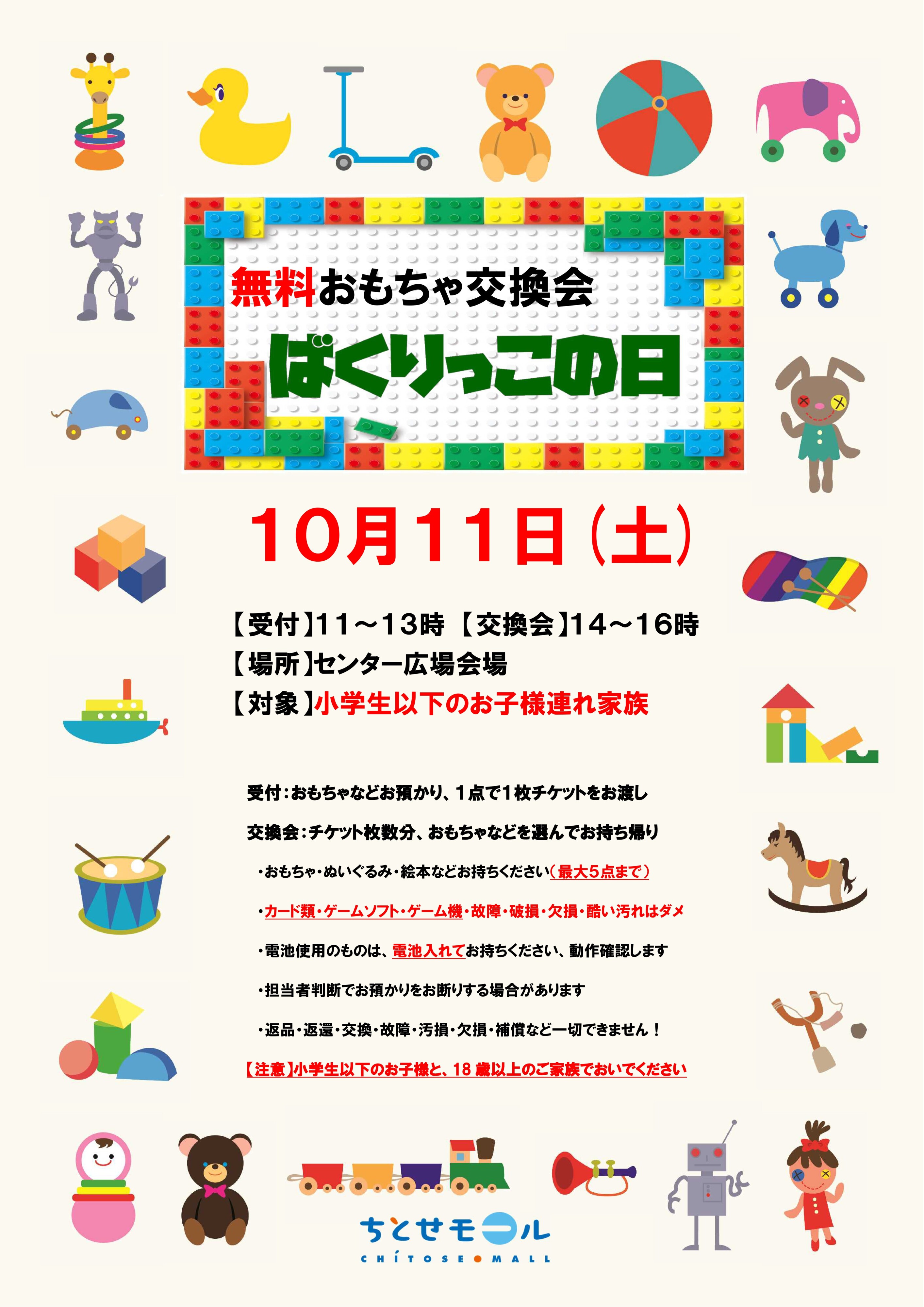10月11日(土)無料おもちゃ交換会 ばくりっこの日