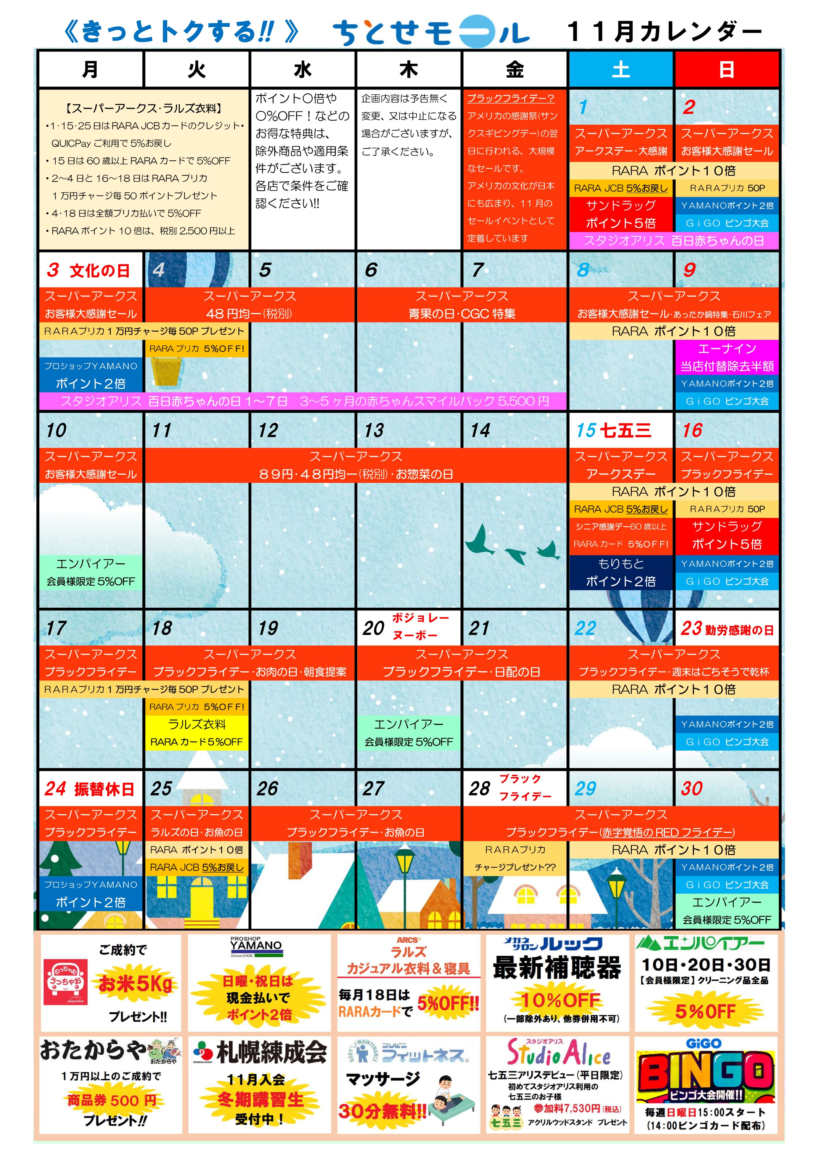 【CHECK!】ちとせモール「11月のお買い物情報カレンダー」