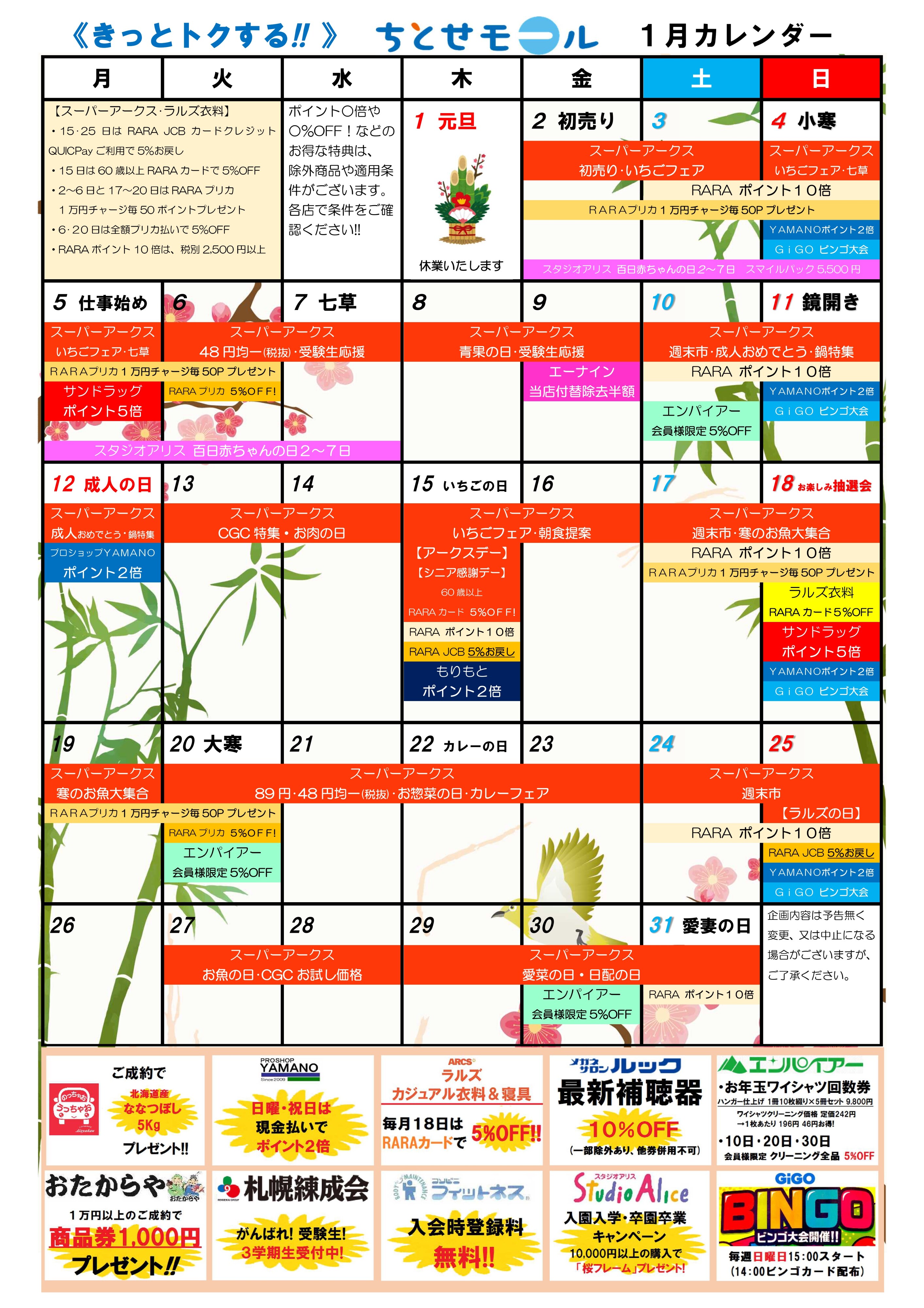 【CHECK!】ちとせモール「1月のお買い物情報カレンダー」