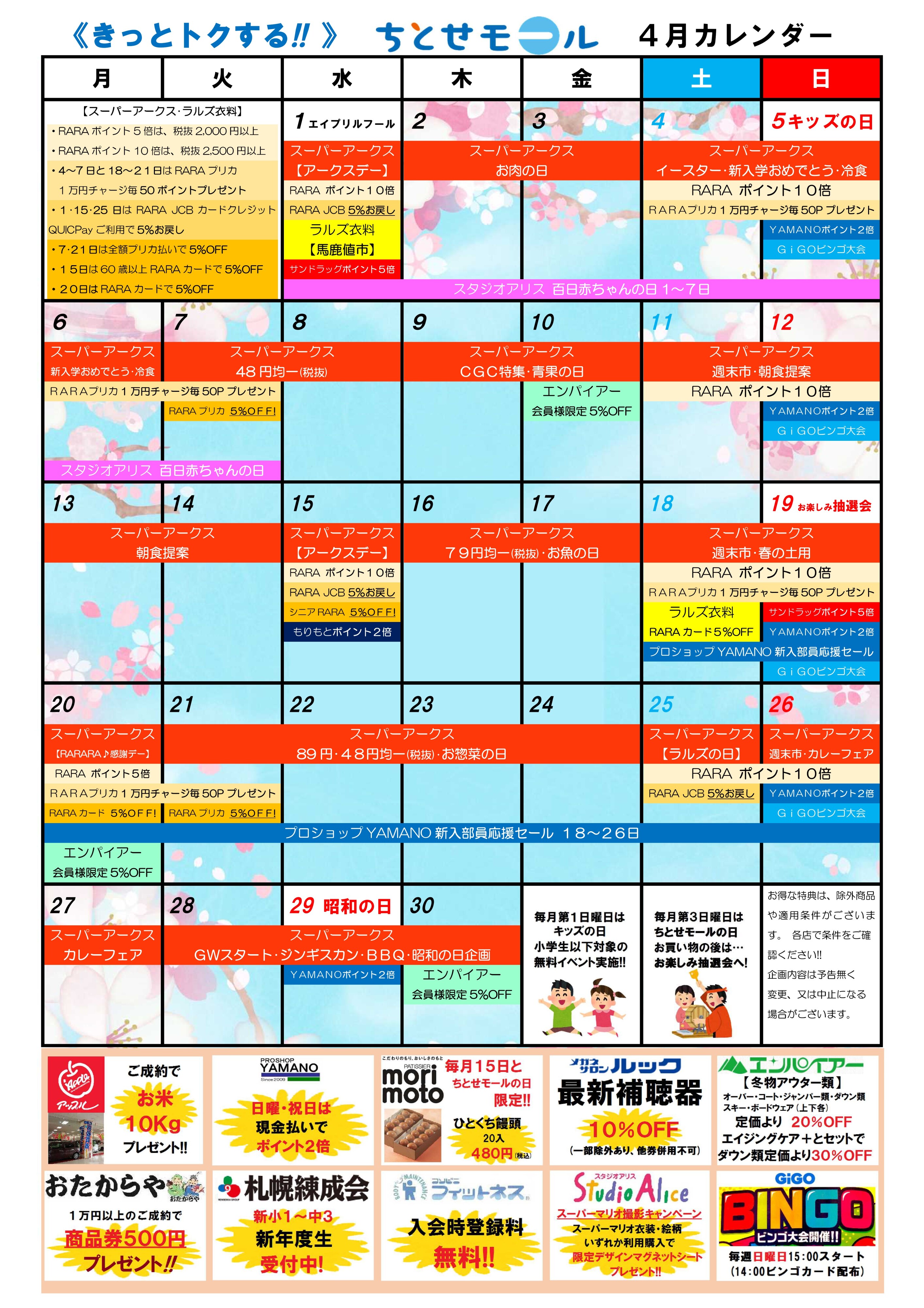 【CHECK!】ちとせモール「4月のお買い物情報カレンダー」