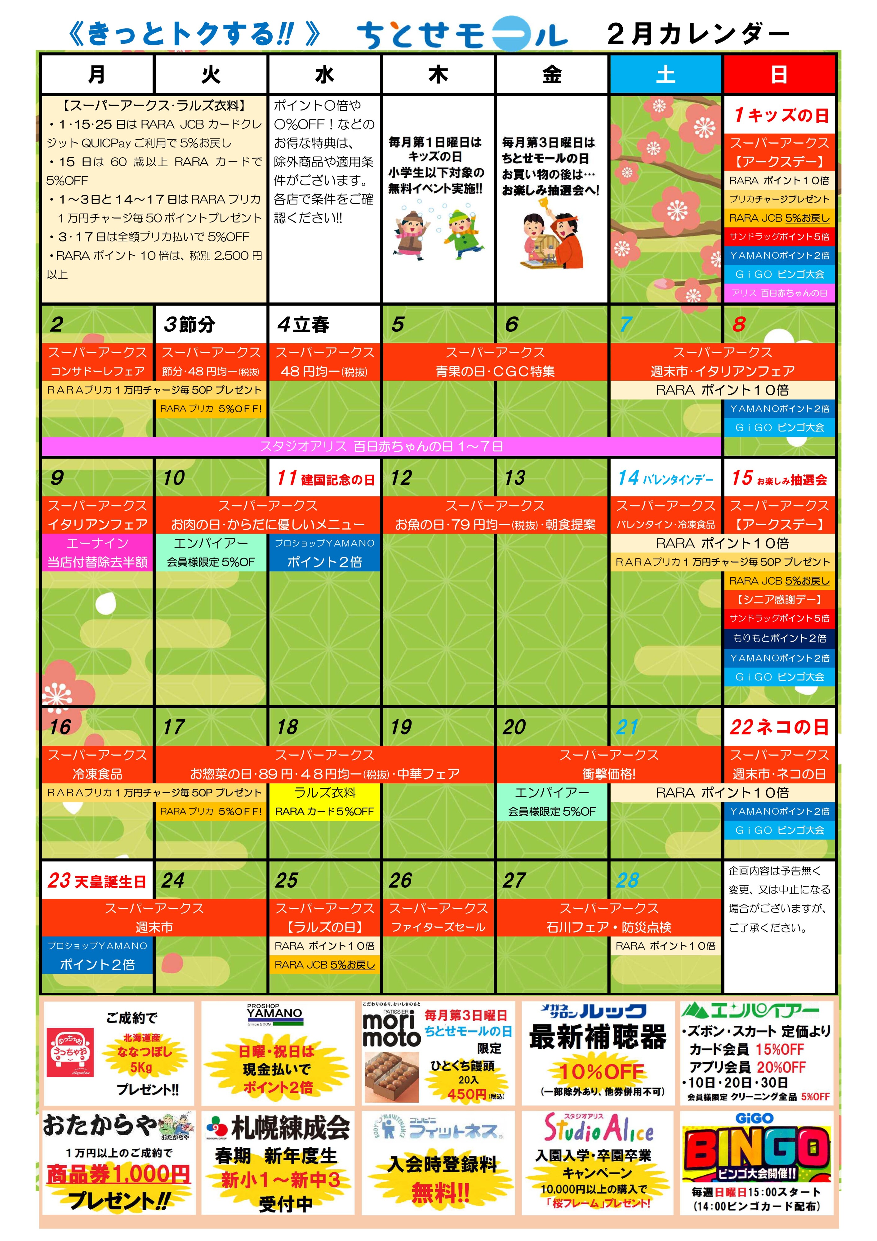 【CHECK!】ちとせモール「2月のお買い物情報カレンダー」